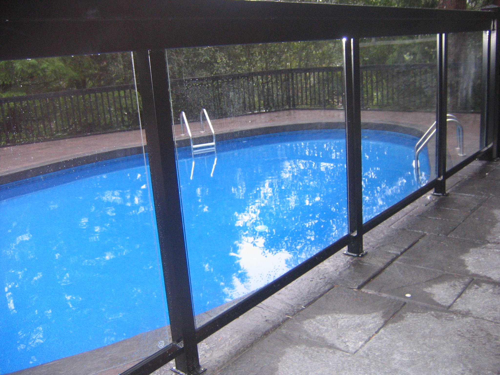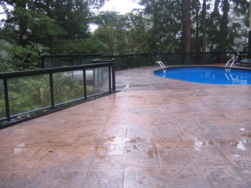 This project included installing a massive amount of Colonial Style aluminum railings with glass inserts, aluminum picket railings and a sliding aluminum gate. These railings surrounded a beautiful pool and hot tub area. Related After Pictures